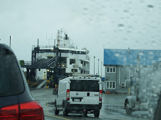This was our stopover after the first day of driving the Cabot Trail. We really enjoyed our supper in the restaurant. The menu is pretty standard but well cooked and the decor is very back woodsy. And then we dragged our tired selves to our cabin, unloaded the car, and started getting ready for bed when I noticed one of the two office-style chairs in our room was broken. Hal crawled into bed to watch TV while I was writing my blog and realized the frame of the bed was REALLY bent. This was damage that housekeeping would have seen and just decided to hide so they could keep renting the room. The furnishings were very spartan. The view from the patio door was nice . . . rocks and trees. (LOL!) Oh yeah, and the restaurant wasn't open for breakfast in the morning.